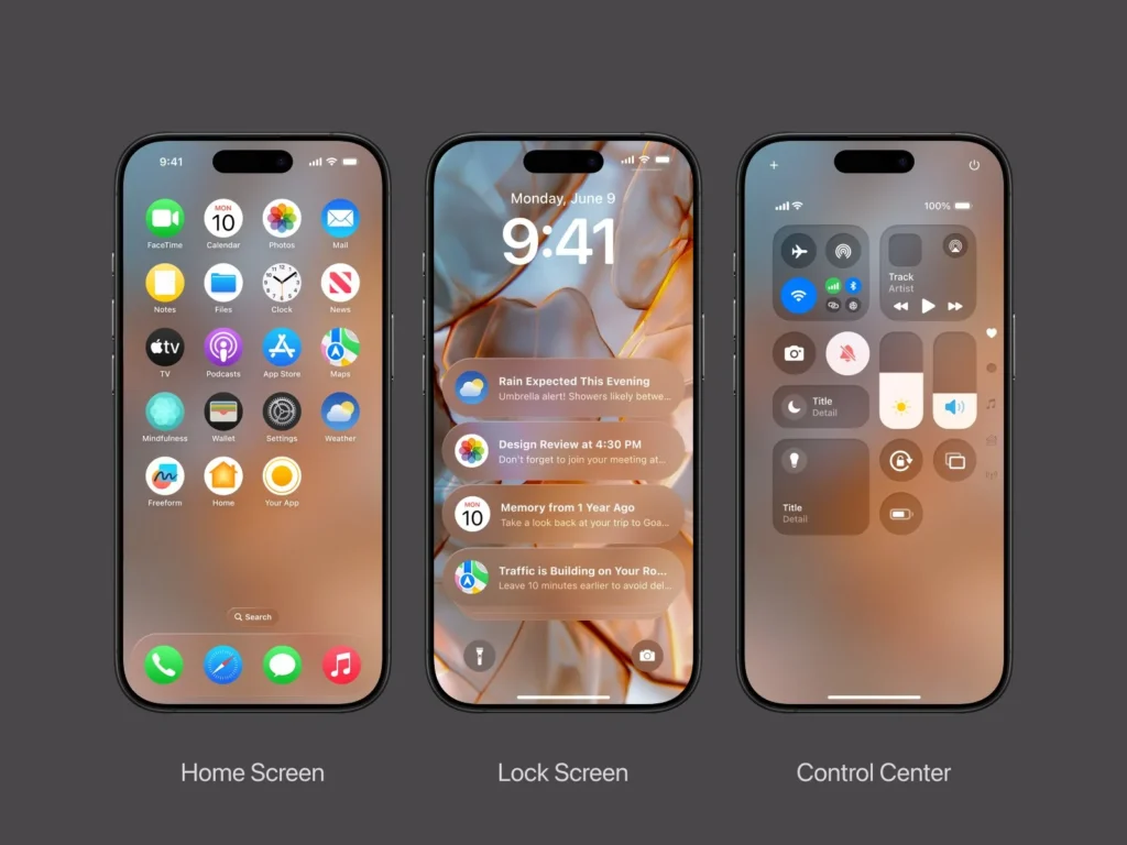Lo principal, la pantalla tendrá nueva exposición de los iconos de las aplicaciones gracias al nuevo “Liquid Glass”, será un rediseño visual donde se mostrará transparencia, fluidez y luminosidad desde iconos animados, que la barra de navegación se vuelva “flotante” logrando una estética más translúcida, para el lenguaje visual mostrarán un rediseño de fácil acceso a opciones clave recordando a la función peek and pop de hace una década.