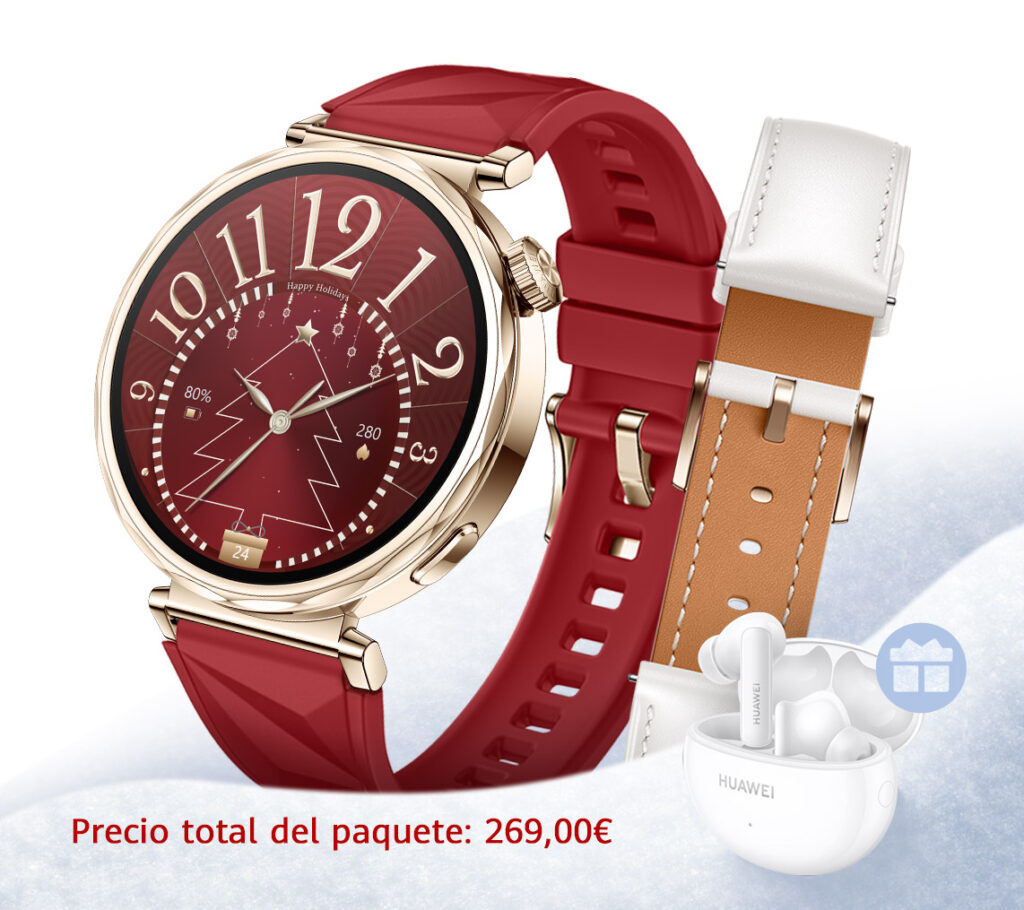 El Huawei Watch GT5 Edición Navidad de 41mm tiene un precio de 270 euros ($5693 MXN / $283 USD). Mientras que la versión de 46mm se consigue por 260 euros ($5483 MXN / $273 USD).