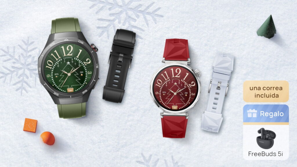 Con correa extra, ya sea de piel (Pro) o de metal (GT5) junto a unos Huawei FreeBuds 5i de regalo.